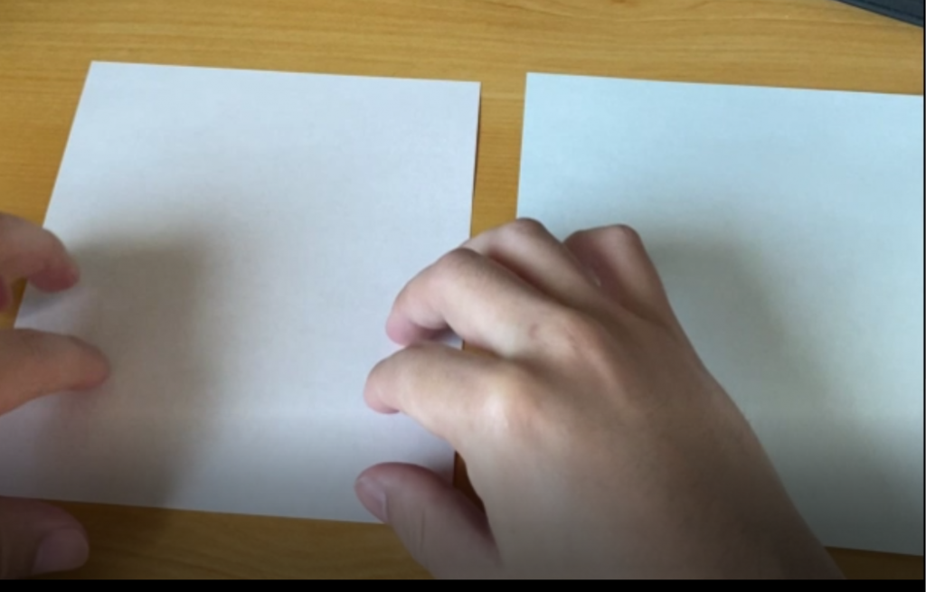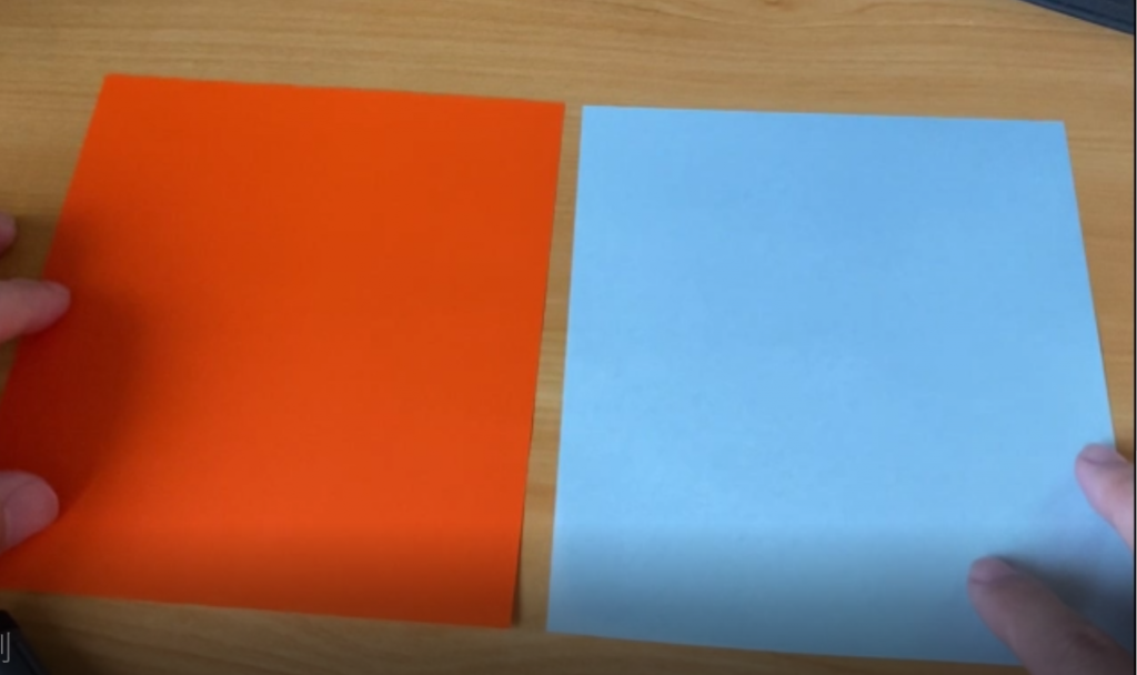 今回使用したのは、15cm × 15cmの折り紙2枚です。