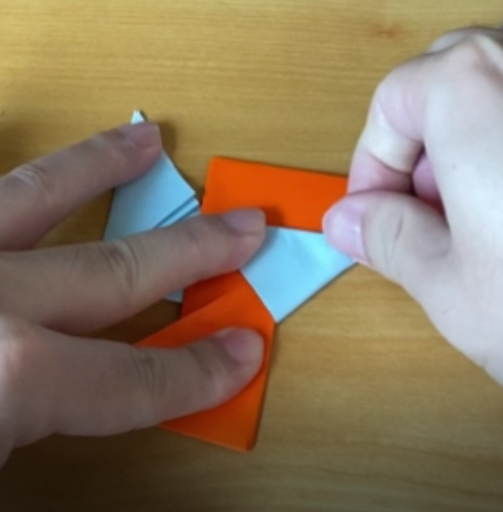 折れたら、向きをこのように揃えます。