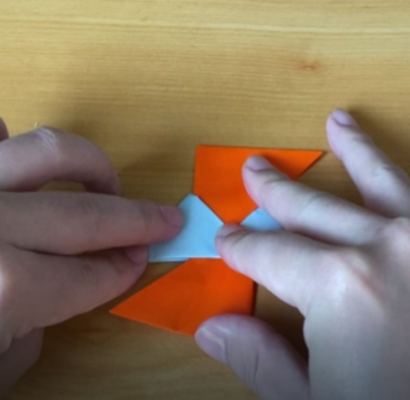 先ほどと同じように、右下の先を真ん中の空間に入れます